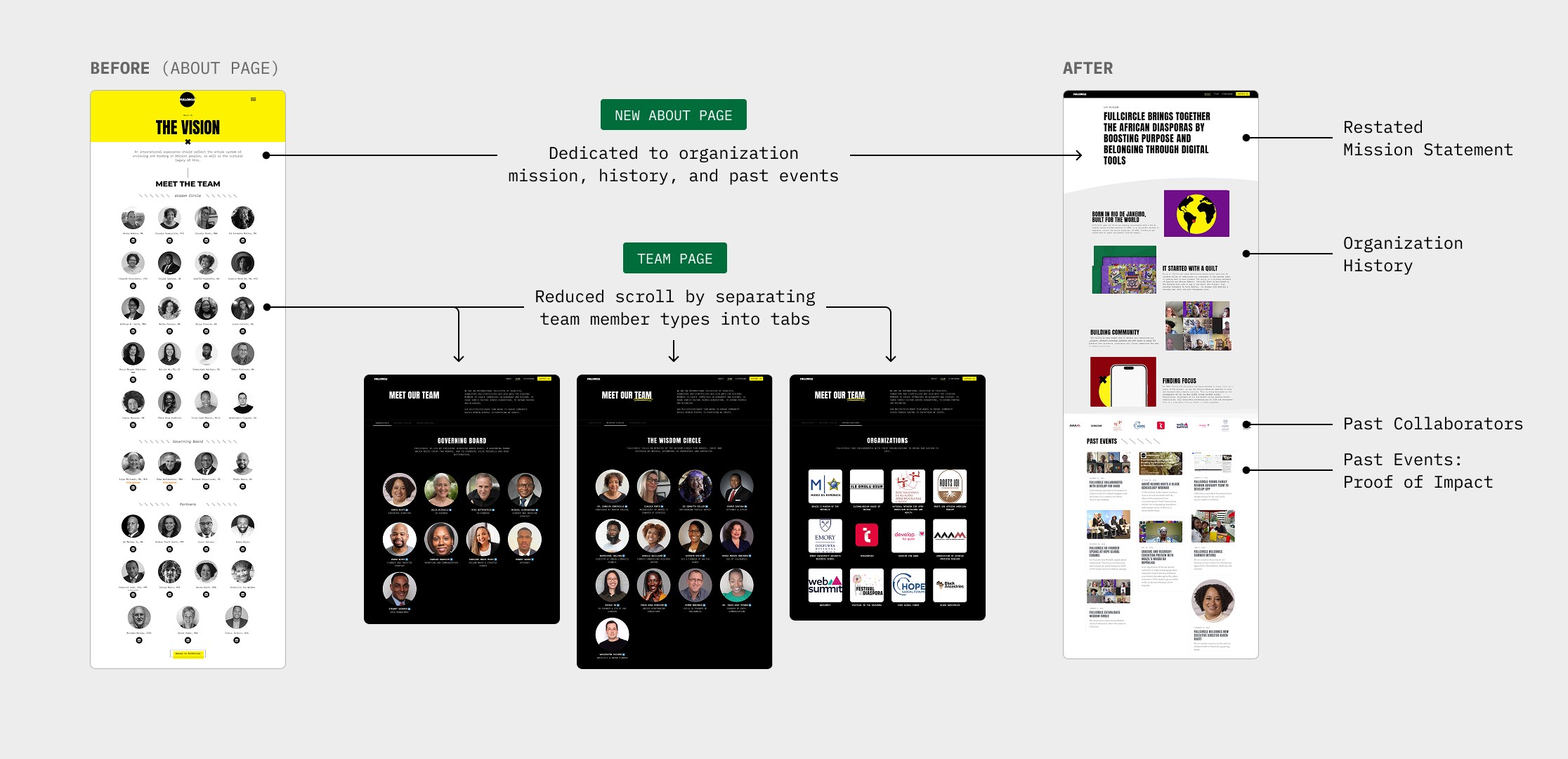 I initiated a team meeting with FullCircle's advisory board and target users to understand website expectations vs. reality.