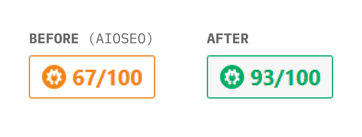 Page-level SEO scores significantly improved after optimization, measured using AIOSEO.