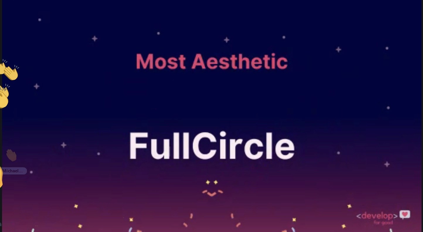 After presenting our work to judges from leading tech companies, FullCircle received the Most Aesthetic Design Award.