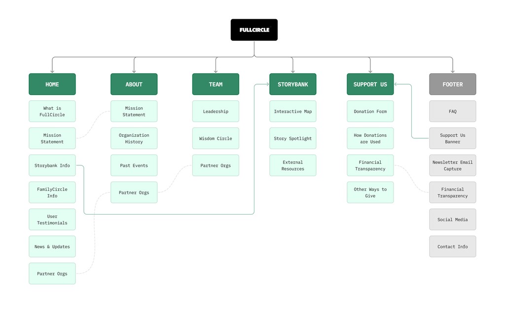 New pages highlighted FullCircle's mission, leadership, and story with strategic phrasing