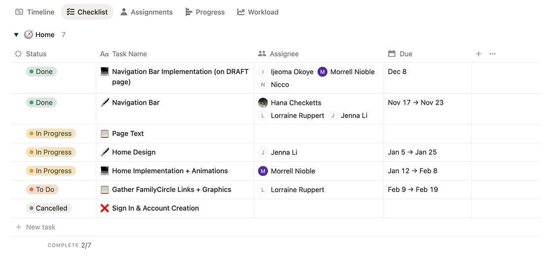 Notion Task Boards: Work Assigned by Team Member Strength and Project Timeline